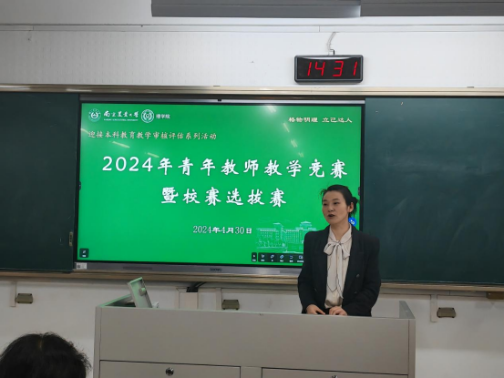 为扎实开展迎接审核评估工作,全面提高青年教师教育教学水平,我院于4月30日举办了青年教师教学竞赛暨校赛选拔赛,共有来自数理化各专业八位青年教师同台竞技。比赛由院教指委员会及教学督导等多位具有资深教学经验的老师担任评委,由张瑾副院长主持。学院青年教师到场观摩。