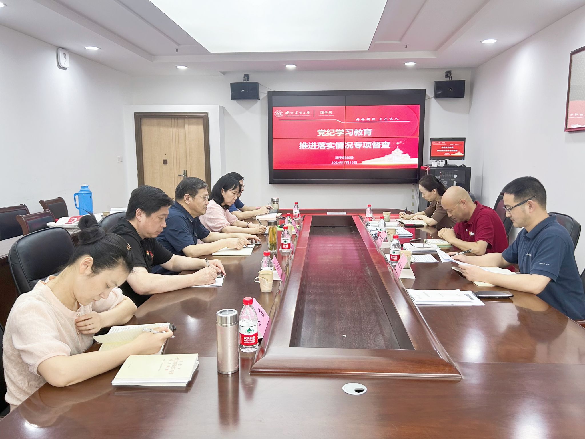 党委坚持“五结合”,强化“三突出”高标准高质量推进党纪学习教育走深走实》为题,针对前一阶段学院开展党纪学习教育情况,存在的不足以及下一步工作思考展开了详细汇报。随后督察组就学院党委开展党纪学习教育的具体过程和成效等与班子展开座谈研讨。