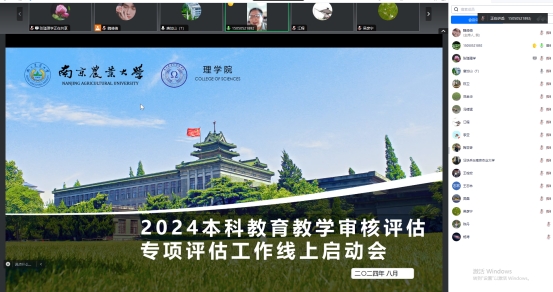本科教育教学审核评估线上启动会顺利召开。南京大学原副校长王志林,东南大学丘成桐中心副主任王栓宏,南京邮电大学图书馆馆长唐加山,中国药科大学教务处副处长江程,南京理工大学数学与统计学院副院长范金华作为专家组成员线上出席会议,南京农业大教务处陈卫作为学校职能部门代表,与肉视频