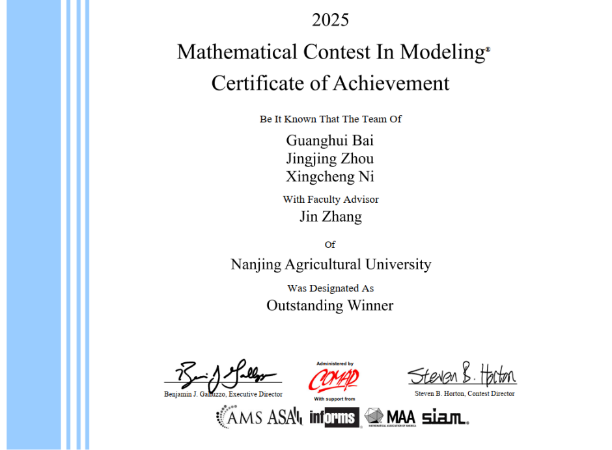 统计学专业2022级本科生白广慧、周晶晶和倪兴程组成的参赛队伍在全球2.7万支队伍中脱颖而出,摘得最高荣誉——Outstanding Winner奖(特等奖),彰显了我校本科生创新实践能力与综合素质的国际一流水平。