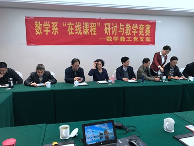 13号下午和14号上午,党支部分别组织了数学系“在线课程”研讨会和青年教师授课比赛,由系主任李强老师主持。“在线课程”研讨会首先由侯丽英老师介绍了首次慕课教学的核心理念及其与传统教学方式的主要区别,随后所有参会教师共同对这一教学模式进行了深入的探讨。最后,督导徐凤君老师传达了学校对转变教学模式的鼓励,希望所有老师都能切身参与其中。数学教工支部组织了青年教师授课比赛,杨涛,刘吉和陈园园三位教师积极参与了比赛,徐老师和其他资深教师对每位参赛者都给出了非常详尽的意见和建议,从选题到如何引入、从课件制作到语言表达,所有参赛教师都表示深受教诲和激励。