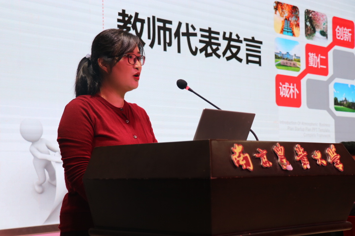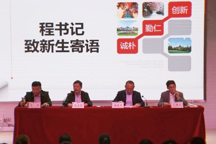 教师代表、化学系副主任、应化201班班主任吴梅笙老师从大学和学生的自身定位出发,向同学们展示学院的学科实力,鼓励同学们走好大学每一步。