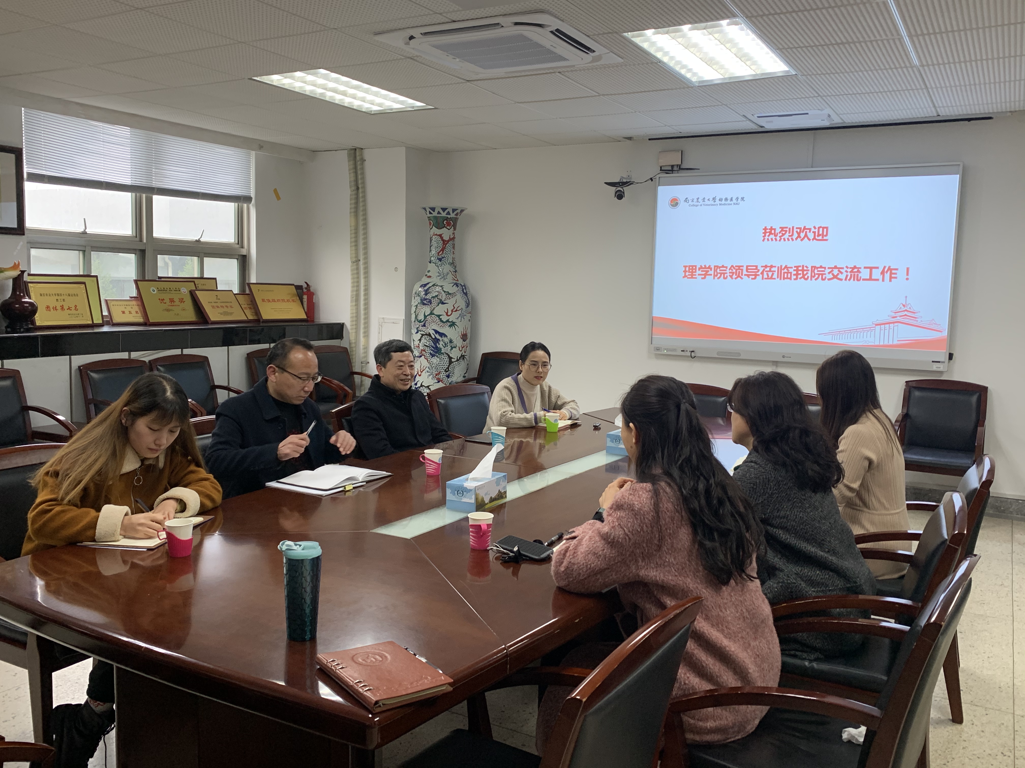 巡察工作联络员等到动物医学习交流,受到动物医学院领导和相关老师的热情接待,姜岩书记介绍了动物医学院经过全面政治体检,进一步严明政治纪律,提高办学水平。副书记刘照云详细介绍了动物医学院在迎接校党委巡察工作中的具体做法,党务秘书介绍了后期档案整理方法,为我们迎接学校巡察提供了宝贵的经验。
