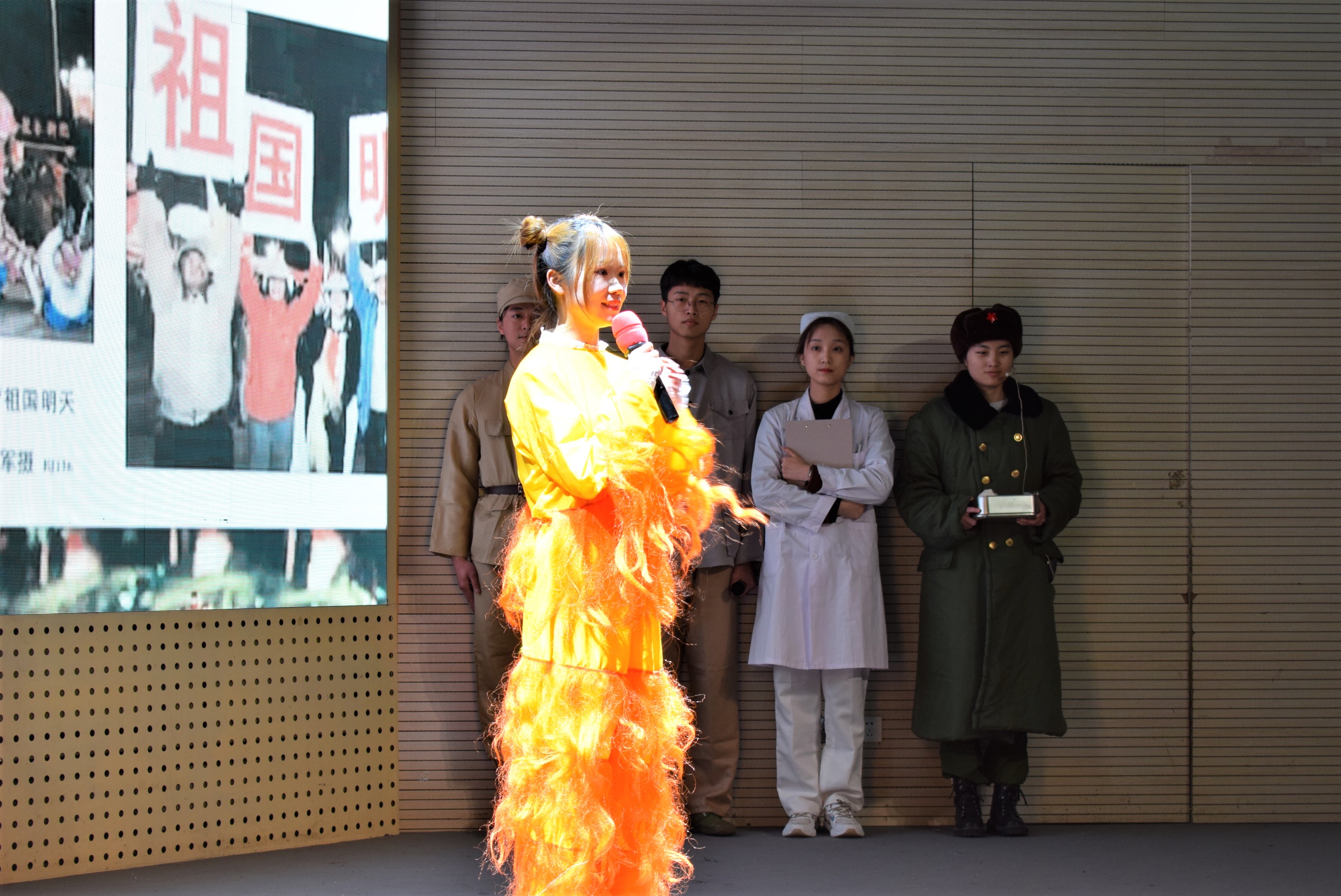 万里长空且为忠魂舞,英雄是旗帜,革命英雄是民族共同的记忆。不同时代的青年学生与先烈对话,与信仰对话,通过情景再现的表演形式,展现中国共产党领导下的新中国自创立以来的步步艰辛和忘我奋斗,一代代青年人精神传承,火炬接力,告慰先烈。