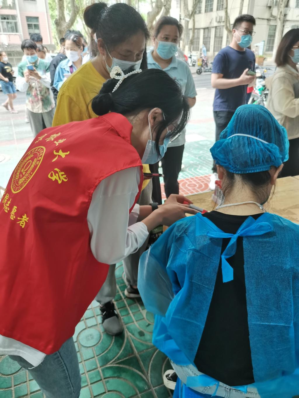 学院采取“2+4”组合岗位安排,即由2名教师和4名学生志愿者组成一个工作组,由6名志愿者完成半天的核酸检测志愿服务。党员师生统一着装,佩戴党徽,亮身份、树形象。截至目前,学院所有党支部均已参与到核酸检测志愿服务工作中。