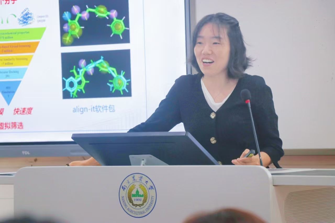 数学系副教授陈园园结合自身从代数学向生物信息学跨学科转型的经历,作《基于AI的药物筛选平台开发——高性能计算助力药物研发》专题报告。她通过超大规模虚拟筛选、分子动力学模拟、深度学习模型训练等系列研究案例,展现了高性能计算平台在提升药物研发效率与精准度方面的核心作用。