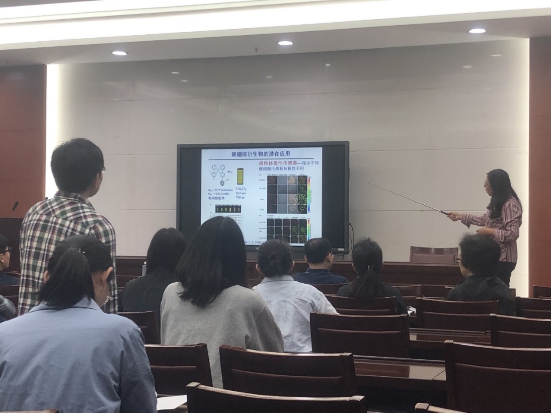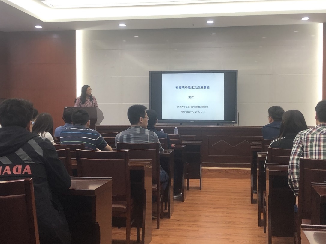一楼学术报告厅进行了题为“碳硼烷的衍生化及应用潜能”的精彩报告。燕红,女,1965年生,教授,博导,国家杰出青年基金获得者,俄罗斯自然科学院外籍院士。1983-1990内蒙古大学化学系本科及硕士生;1990-1993年南京大学博士生;1993年毕业后留校任南京大学配位化学国家重点实验室讲师(1993-1995)。此后分别在瑞士Neuchatel(1996-1997)及德国Bayreuth (1997-2000)从事博士后研究; 美国Notre Dame (2000-2004)做研究助理,2005年起为美国Nanova Inc.化学家,2005年9月应聘为南京大学教授,2006年3月评为博士生导师。2006-2007年任无机化学教研室主任,2008-2015年任无机学科副主任,2009-2015年任南京大学化学化工学院公共仪器平台主任。2015-2016年担任化学化工学院副院长。2008年被评为江苏省“青蓝工程”优秀中青年学术骨干带头人。2009年获国家杰出青年基金。2011年被聘为南京微结构国家实验室唐仲英特聘教授, 2012年入选南京大学高层次学科带头人(特聘教授)奖励计划。2012 年获教育部自然科学二等奖。2015年当选为俄罗斯自然科学院外籍院士。教学与科研涉及领域为配位化学,金属有机化学,有机化学,有机发光材料等,已在JACS, Angew,Chem.Sci, Chem.Commun,Org. Lett.等国内外刊物上发表研究论文170 余篇。 2013-2015,2019-2021为美国化学会Organometallics 杂志国际编委。此次学术报告由肉视频