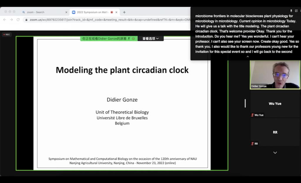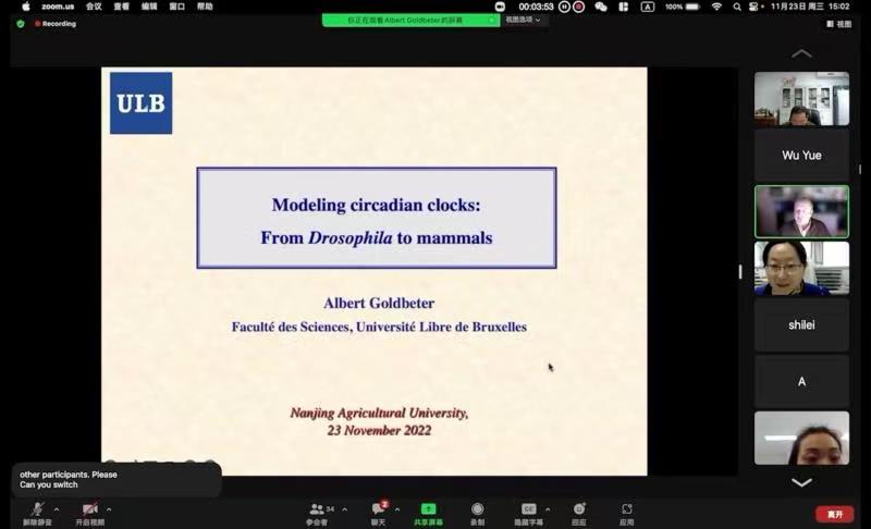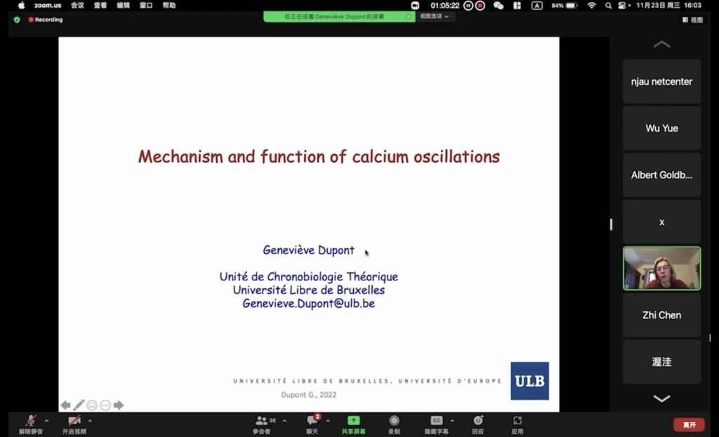 主办的“2022年数学生物学与计算生物学系列报告(二)--细胞昼夜节律建模与农业应用”2022年11月23日在线召开。应邀做报告的专家有比利时布鲁塞尔自由大学Albert Goldbeter教授、Geneviève Dupont教授、Didier Gonze教授。会场学术氛围浓厚,每一位专家的报告都引起与会学者的热烈讨论,专家一一详细解答了听众提出的问题。会议结束时,与会专家学者一致表示,无论哺乳动物生物钟还是植物生物钟都是当前生物学研究的热点课题,同时Ca2+振荡和Ca2+波控制着大量的细胞功能,在人类健康和农业生产中具有广阔的应用前景,希望以后进一步加强交流和合作。