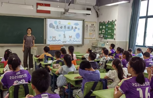 在四年级五班,志愿者通过丰富多彩的教学内容,让小学生们了解海洋生物的多样性、海洋生态系统的重要性以及保护海洋环境的紧迫性,培养他们的环保意识和科学素养。通过现场提问等方式,了解小学生们对海洋知识的掌握情况。学生们普遍认为本次活动非常有趣,让他们学到了很多海洋知识,开阔了视野,并且对海洋生物产生了浓厚的兴趣。
