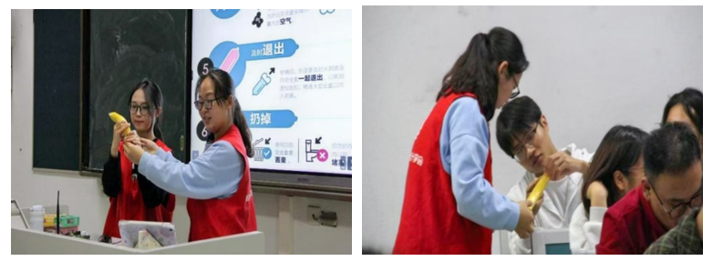 在对艾滋病的传播途径有了初步了解之后,同学们根据讲解员的示范,积极地参与了正确使用安全套的实操练习,并进一步掌握了预防艾滋病的有效方法。通过这个环节,同学们弥补了自己在这一领域的知识空白,从而在日常生活中能够更加注重采取预防艾滋病的措施。