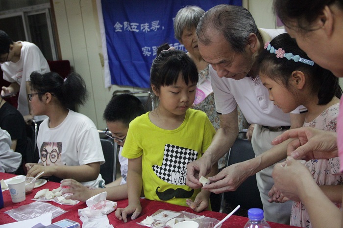 爷爷指导传统小馄饨包法