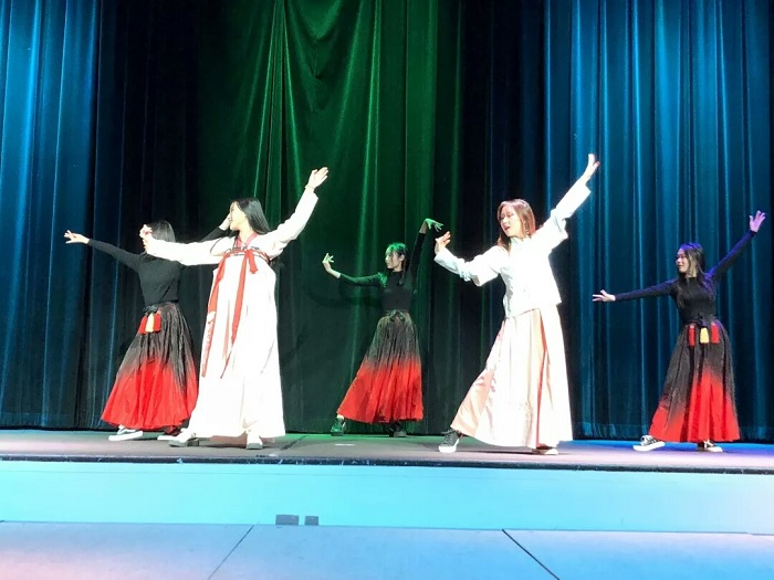 晚会上,集才华与颜值于一身的女同学给大家带来了底蕴悠悠的古风舞蹈,全场洋溢着中华舞蹈的俊逸之美。来自工学院的同学则带来了一段精彩的武术表演,在那一招一式、一顿一提中,精湛的功底通过舞台化的呈现,便早已深入人心。虽然是在遥远的异国,但中华武术带来的独特魅力,总是那么惊艳。随着无数双手随着音乐的律动挥舞,一首扣人心弦的《Beautiful Mess》如闪耀全场,中国说唱带动起全场热烈的氛围,每个人都沉浸在了晚会之中。