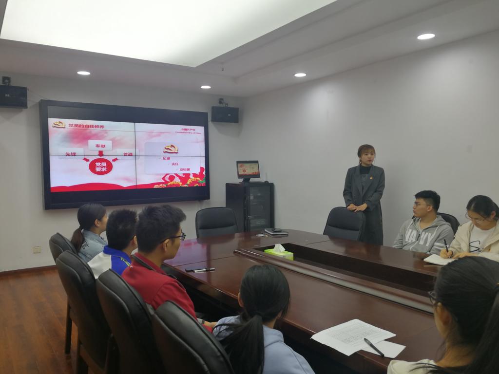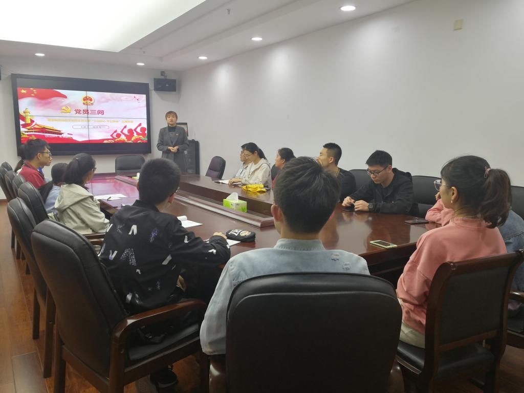 应用化学本科生党支部在会议室开展了一场直击心灵的党课。本次党课以“党员三问”为主题,主讲人为支部书记周玲玉。