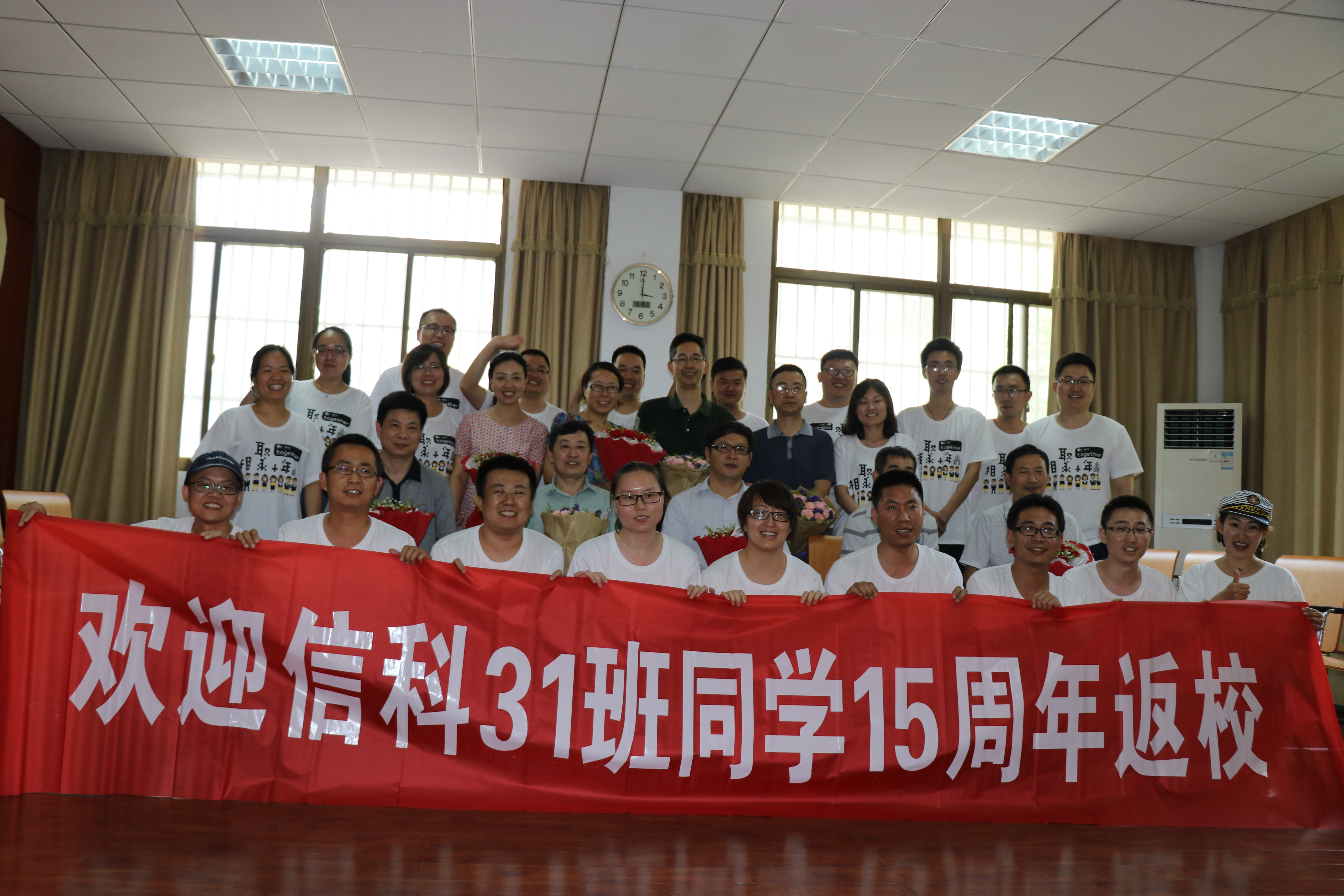 党委书记程正芳老师,院长章维华老师,院党委副书记刘照云老师,系主任李强老师,教师代表李爱萍老师、朱震球老师、周宏老师以及信科31班全体同学在活动中心301齐聚,师生追忆往昔,畅谈未来。