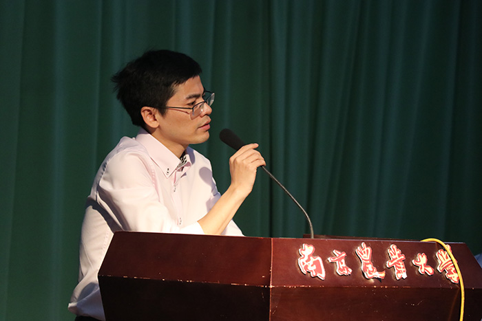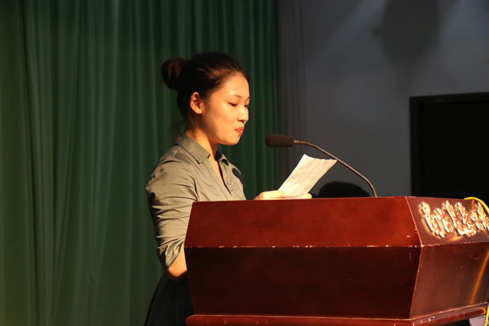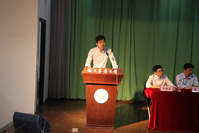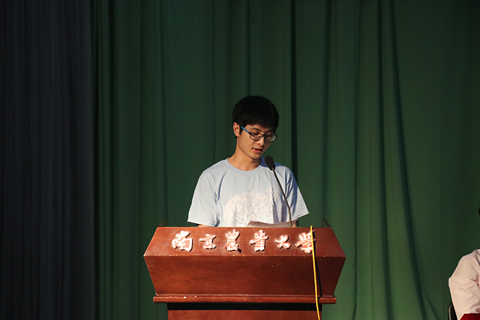 院长章维华教授致开场词,对新生的到来表示热烈欢迎,并对学院的情况进行系统的介绍,让同学们对学院历史、学科建设有了进一步的认识。接下来三位学生代表:吴嘉琪(17级本科新生代表,来自应化172班)、夏云涛(2017级研究生新生代表,天然产物化学专业)、史政源(2014级本科生代表,信息与计算科学专业)分别向我们讲述了他们的对大学的生活理解与憧憬。