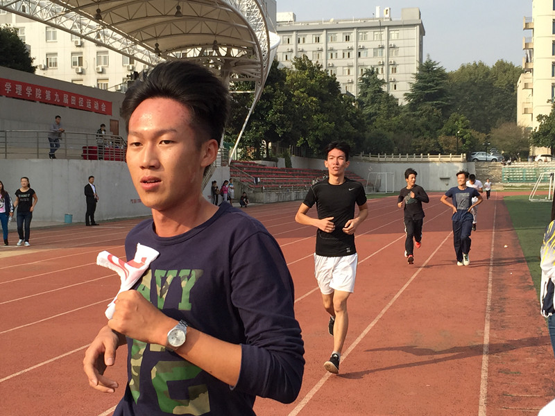 对于女生而言,跑步似乎是痛苦的,尤其是1000米的长距离,但是在此次女子1000米运动员身上,我们看到的却是力量、奔放与拼搏。比赛开始之后,几名选手互不示弱,都将自己最好的一面展现出来,尽可能的向前冲刺。但是随着体力的渐渐不支,大家的速度都有不同程度的减缓,但这并没有影响运动员们争夺第一的决心。在接下来的比赛当中,来自应化151的荣赟和应化152的陈嘉琦两名同学谁也不甘示弱,两人以4分31秒的好成绩获得并列第一,来自信科151的葛星宇获得了第三名。