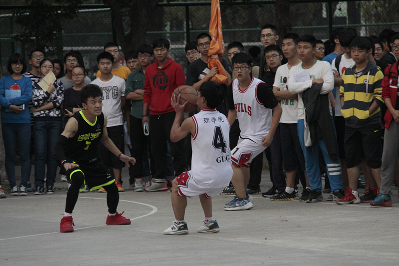 10月21日下午四点,一场扣人心弦的篮球赛在体育中心附近的篮球场展开,毫无硝烟却战意十足。