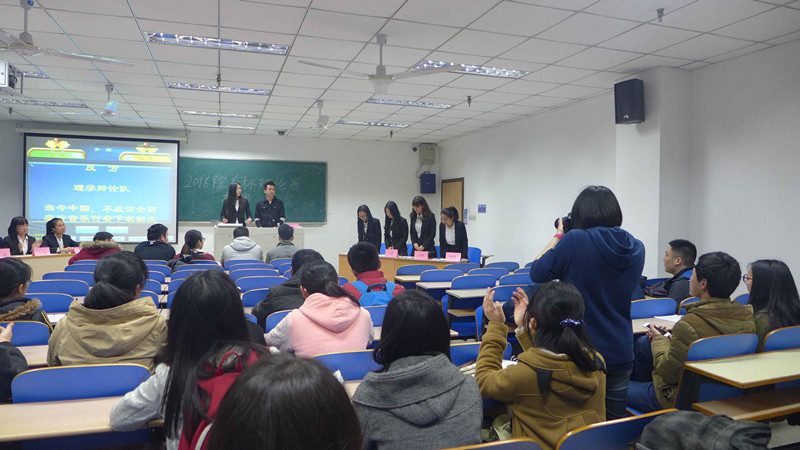 对农学院,在教四楼B605拉开帷幕。此次比赛的评委团由三位其他学校知名辩手和两位本校知名辩手组成。