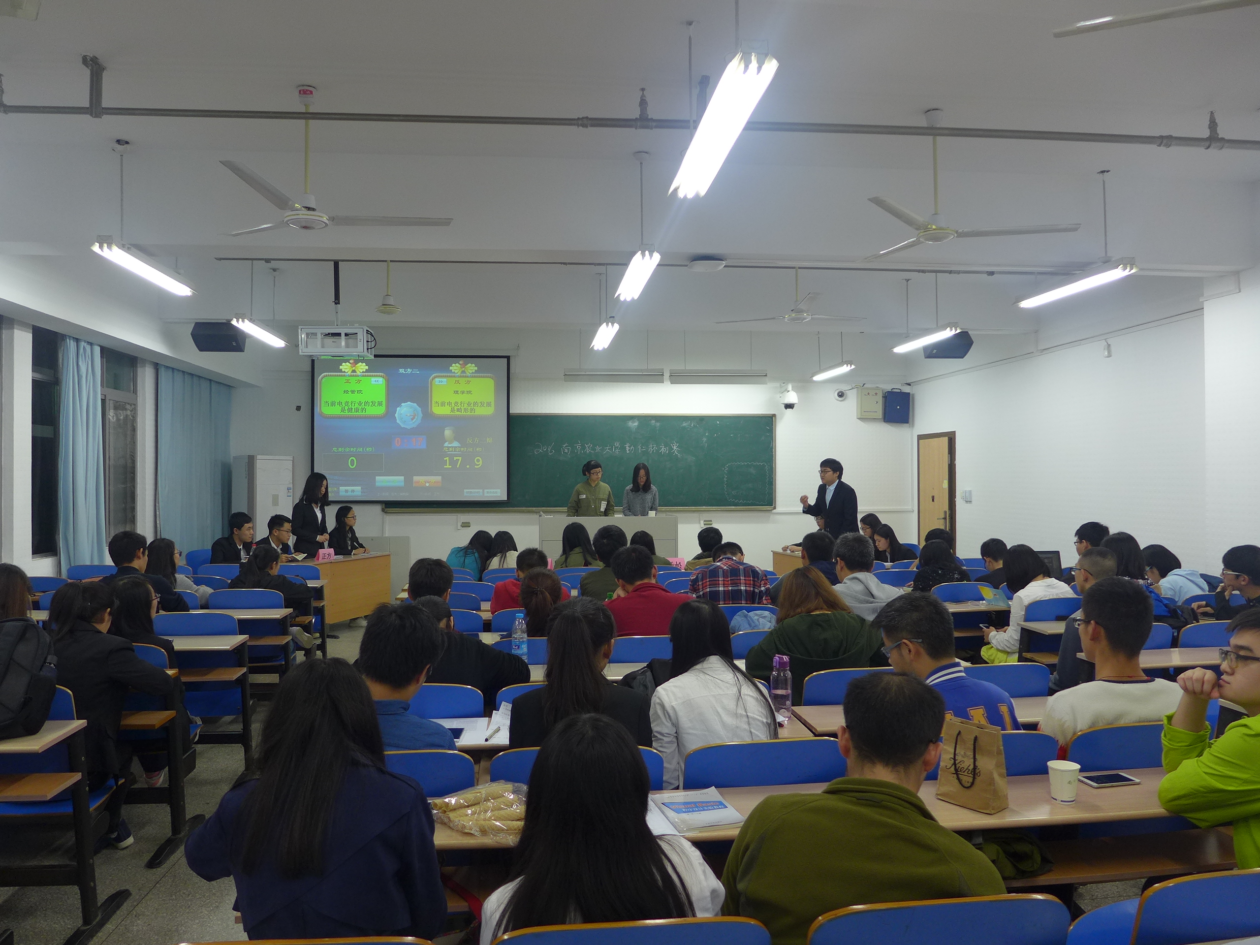 与经管院、植保院小循环辩论赛,两组成员围绕“当今电竞行业的发展是健康或畸形的”辩题展开激烈讨论。评委除了本校的几位优秀辩手,还特地邀请了南理、南财的资深辩论人为比赛点评。